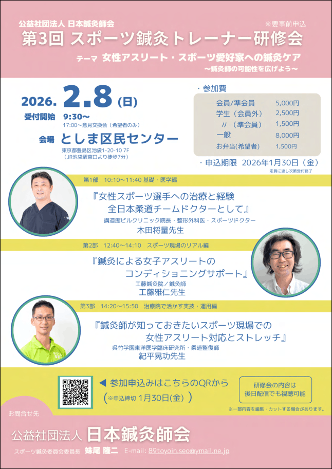 日本鍼灸師会第3回スポーツ鍼灸トレーナー研修会のご案内