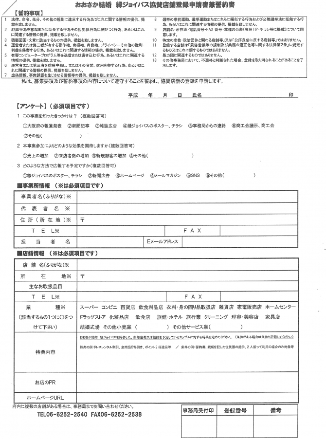 ・本会事務局では申込を受け付けていませんので、「おおさか結婚 縁ジョイパス事務局」にFAXをお願い致します。